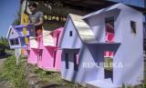Pekerja menyelesaikan pembuatan rumah boneka barbie di bengkel kerja Krisna Shop di Jalan Soekarno Hatta, Kota Bandung, Jawa Barat, Kamis (20/7/2023). Berbagai jenis rumah boneka barbie yang dijual dengan harga Rp200 ribu hingga Rp1,6 juta tergantung ukuran dan tingkat kesulitan tersebut telah dipasarkan ke berbagai daerah di Indonesia serta luar negeri. (FOTO : ABDAN SYAKURA/REPUBLIKA)