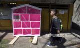 Pekerja menjemur rumah boneka barbie di bengkel kerja Krisna Shop di Jalan Soekarno Hatta, Kota Bandung, Jawa Barat, Kamis (20/7/2023). Berbagai jenis rumah boneka barbie yang dijual dengan harga Rp200 ribu hingga Rp1,6 juta tergantung ukuran dan tingkat kesulitan tersebut telah dipasarkan ke berbagai daerah di Indonesia serta luar negeri. (FOTO : ABDAN SYAKURA/REPUBLIKA)