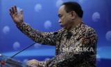 Menteri Komunikasi dan Informatika (Kominfo) Budi Arie Setiadi menyampaikan konferensi pers terkait judi online di Gedung Kominfo, Jakarta, Kamis (20/7/2023). Kemenkominfo mencatat sejak 2018 hingga 19 Juli 2023 telah melakukan pemutusan akses terhadap 846.047 konten perjudian online. (FOTO : Republika/Putra M. Akbar)