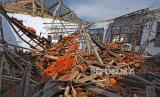 REPUBLIKA.CO.ID, PANDEGLANG -- Kondisi ruang kelas yang atapnya roboh di SMP Negeri 2 Karangtanjung, Pandeglang, Banten, Kamis (20/7/2023).