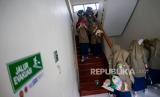 REPUBLIKA.CO.ID, YOGYAKARTA -- Pelajar mengevakuasi korban saat simulasi bencana gempa bumi di SMA Muhammadiyah 1 Yogyakarta, Jumat (21/7/2023).