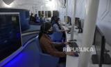 Petugas memantau layar yang menampilkan gambar hasil cctv face recognition (kamera pengawas pengenalan wajah) di Bandung Command Center, Jalan Wastukencana, Kota Bandung, Jawa Barat, Jumat (21/7/2023). Pemerintah Kota Bandung memperbarui teknologi analitis berupa face recognition serta penghitungan kendaraan di sejumlah kamera pengawas di Kota Bandung. Hal tersebut bertujuan untuk memudahkan pelacakan pelaku kejahatan, mencegah terorisme serta meningkatkan pelayanan publik. (FOTO : ABDAN SYAKURA/REPUBLIKA)