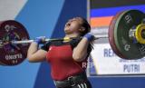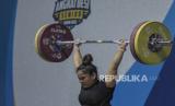Lifter asal Sumatera Barat, Mayang Sari bertanding pada Kejuaraan Nasional Angkat Besi Senior 2023 di GOR Saparua, Kota Bandung, Jawa Barat, Jumat (21/7/2023). Kejuaraan nasional yang digelar oleh Perkumpulan Angkat Besi Seluruh Indonesia (PABSI) tersebut diikuti oleh 280 atlet dari 13 provinsi di Indonesia. Kejuaraan tersebut digelar dalam rangka persiapan atlet untuk menghadapi PON XXI/2024 yang akan digelar di Sumatera Selatan dan Aceh. (FOTO : ABDAN SYAKURA/REPUBLIKA)