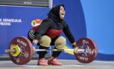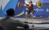 Lifter asal Lampung, Fenna Yuliyani bertanding pada Kejuaraan Nasional Angkat Besi Senior 2023 di GOR Saparua, Kota Bandung, Jawa Barat, Jumat (21/7/2023). Kejuaraan nasional yang digelar oleh Perkumpulan Angkat Besi Seluruh Indonesia (PABSI) tersebut diikuti oleh 280 atlet dari 13 provinsi di Indonesia. Kejuaraan tersebut digelar dalam rangka persiapan atlet untuk menghadapi PON XXI/2024 yang akan digelar di Sumatera Selatan dan Aceh. (FOTO : ABDAN SYAKURA/REPUBLIKA)