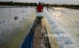 REPUBLIKA.CO.ID,SIDOARJO -- Petambak memanen garam di Desa Tambak Cemandi, Sedati, Sidoarjo, Jawa Timur, Jumat (21/7/2023).