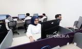 Karyawan Bank Mega Syariah (BMS) beraktivitas diruang layanan contact center yang baru diresmikan di Jakarta, Jumat (21/7/2023). Layanan Contact Center BMS ini nantinya tidak hanya melayani kebutuhan informasi atau keluhan nasabah, namun juga mengintegrasikan aktivitas outbound call nasabah seperti telemarketing untuk tabungan haji, pembiayaan konsumer, kartu pembiayaan Syariah Card hingga penyediaan layanan wealth management. (FOTO : Dok Republika)