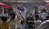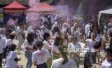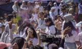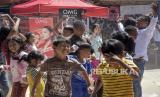 Sejumlah anak bermain colour splash (bubuk berwarna) di Liogenteng, Kecamatan Astanaanyar, Kota Bandung, Jawa Barat, Sabtu (22/7/2023). Kegiatan yang digelar oleh One Six Sauyunan bersama Karang Taruna Kelurahan Nyengseret tersebut untuk memperingati Hari Anak Nasional serta bentuk apresiasi kemampuan kreativitas anak-anak. (FOTO : ABDAN SYAKURA/REPUBLIKA)