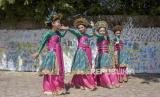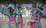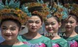 Sejumlah penari cilik bersiap untuk tampil di Liogenteng, Kecamatan Astanaanyar, Kota Bandung, Jawa Barat, Sabtu (22/7/2023). Kegiatan yang digelar oleh One Six Sauyunan bersama Karang Taruna Kelurahan Nyengseret tersebut untuk memperingati Hari Anak Nasional serta bentuk apresiasi kemampuan kreativitas anak-anak. (FOTO : ABDAN SYAKURA/REPUBLIKA)