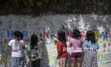 REPUBLIKA.CO.ID,BANDUNG -- Sejumlah anak melukis di dinding di Liogenteng, Kecamatan Astanaanyar, Kota Bandung, Jawa Barat, Sabtu (22/7/2023).