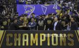 Sejumlah pebasket Prawira Harum Bandung bersama ofisial mengangkat trofi usai memenangkan pertandingan final Indonesia Basket League (IBL) Tokopedia 2023 di Gor C-Tra Arena Bandung, Kota Bandung, Jawa Barat, Sabtu (22/7/2023). Prawira Harum Bandung berhasil menjadi juara IBL Tokopedia 2023 usai mengalahkan Pelita Jaya Bakrie Jakarta dengan skor 63-58. (FOTO : ABDAN SYAKURA/REPUBLIKA)