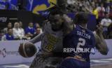 Pebasket Prawira Harum Bandung Jarred Dwayne Shaw (kiri) berusaha melewati hadangan pebasket Pelita Jaya Bakrie Jakarta Dominique Leondras Sutton (kanan) pada babak final Indonesia Basket League (IBL) Tokopedia 2023 di Gor C-Tra Arena Bandung, Kota Bandung, Jawa Barat, Sabtu (22/7/2023). Prawira Harum Bandung berhasil menjadi juara IBL Tokopedia 2023 usai mengalahkan Pelita Jaya Bakrie Jakarta dengan skor 63-58. (FOTO : ABDAN SYAKURA/REPUBLIKA)