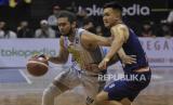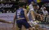 Pebasket Prawira Harum Bandung M Rezza Fahdani Guntara (kiri) berusaha melewati hadangan pebasket Pelita Jaya Bakrie Jakarta pada babak final Indonesia Basket League (IBL) Tokopedia 2023 di Gor C-Tra Arena Bandung, Kota Bandung, Jawa Barat, Sabtu (22/7/2023). Prawira Harum Bandung berhasil menjadi juara IBL Tokopedia 2023 usai mengalahkan Pelita Jaya Bakrie Jakarta dengan skor 63-58. (FOTO : ABDAN SYAKURA/REPUBLIKA)