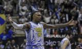 Pebasket Prawira Harum Bandung Jarred Dwayne Shaw melakukan selebrasi usai mencetak skor pada babak final Indonesia Basket League (IBL) Tokopedia 2023 di Gor C-Tra Arena Bandung, Kota Bandung, Jawa Barat, Sabtu (22/7/2023). Prawira Harum Bandung berhasil menjadi juara IBL Tokopedia 2023 usai mengalahkan Pelita Jaya Bakrie Jakarta dengan skor 63-58. (FOTO : ABDAN SYAKURA/REPUBLIKA)