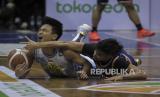 Pebasket Prawira Harum Bandung Yudha Saputera (kiri) berebut bola dengan pebasket Pelita Jaya Bakrie Jakarta Yesaya Alessandro Saudale (kanan) pada babak final Indonesia Basket League (IBL) Tokopedia 2023 di Gor C-Tra Arena Bandung, Kota Bandung, Jawa Barat, Sabtu (22/7/2023). Prawira Harum Bandung berhasil menjadi juara IBL Tokopedia 2023 usai mengalahkan Pelita Jaya Bakrie Jakarta dengan skor 63-58. (FOTO : ABDAN SYAKURA/REPUBLIKA)