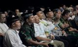 Pemimpin Redaksi Republika Irfan Junaidi (ketiga kanan) bersama Sekretaris Daerah Kota Depok Supian Suri (ketiga kiri) menyimak tausiyah dari Habib Husein Jafar Al Hadar dalam gelaran Festival Hijriah di Gedung Ronatama, Depok, Jawa Barat, Sabtu (22/7/2023). Gelaran Festival Hijriah tersebut dalam rangka menyambut 1 Muharram 1445 Hijriah yang berlangsung hingga 10 Agustus mendatang di sembilan kota. Selain itu, gelaran Festival Hijriah akan menghadirkan beragam kegiatan yakni tausiyah dan penampilan seni budaya Xinjiang dari komunitas lokal. (FOTO : Republika/Thoudy Badai)