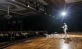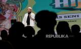 Habib Husein Jafar Al Hadar menyampaikan tausiyah saat gelaran Festival Hijriah di Gedung Ronatama, Depok, Jawa Barat, Sabtu (22/7/2023). Gelaran Festival Hijriah tersebut dalam rangka menyambut 1 Muharram 1445 Hijriah yang berlangsung hingga 10 Agustus mendatang di sembilan kota. Selain itu, gelaran Festival Hijriah akan menghadirkan beragam kegiatan yakni tausiyah dan penampilan seni budaya Xinjiang dari komunitas lokal. (FOTO : Republika/Putra M. Akbar)