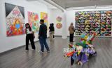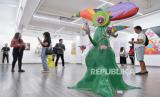 Pengunjung mengamati karya seni dari seniman Daniel Kho dalam pameran bertajuk Castaneda Factor di Jagad Gallery, Jakarta, Ahad (23/7/2023). Seniman Daniel Kho Asal Indonesia yang sudah mengembara ke Eropa sejak tahun 1997 tersebut, menggelar pameran tunggalnya bertajuk Castaneda Factor. Pameran tersebut menceritakan tentang tokoh-tokoh mahluk ethno-extraterrestrial atau campuran mahluk dan mitologi, dewa-dewi, wayang kulit dan tokoh kartun. Castaneda Factor menampilkan 93 karya lukisan dan 20 karya patung dan digelar mulai 15 Juli hingga 15 Agustus. Pameran tersebut menjadi alternatif destinasi wisata akhir pekan untuk melihat karya seniman Daniel Kho, sekaligus menjadi lokasi swafoto. (FOTO : Republika/Thoudy Badai)