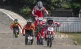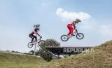 REPUBLIKA.CO.ID, JAKARTA -- Pebalap sepeda Indonesia mengikuti kejuaraan Indonesia BMX Cup 2023 di Arena BMX Pulomas, Jakarta, Ahad (23/7/2023). Pada kelas women elite podium pertama diraih pembalap dari Indonesia National Team Ameliya Nur Sifa sementara podium kedua dan ketiga diraih Jasmine Azzahra dan Rosida Stellina.