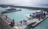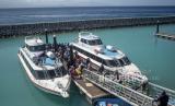 Sejumlah wisatawan dan warga berjalan di dermaga setibanya di Pelabuhan Sampalan, Pulau Nusa Penida, Klungkung, Bali, Ahad (23/7/2023). Pelabuhan yang diresmikan pada November 2022 itu merupakan bagian dari revitaliasai tiga pelabuhan (segi tiga emas) dengan anggaran Rp563 miliar yang saat ini telah dimanfaatkan untuk mempermudah akses warga dan wisatawan dari Pulau Bali ke Pulau Nusa Penida serta Pulau Nusa Ceningan. (FOTO : ANTARA FOTO/Nyoman Budhiana)