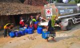 REPUBLIKA.CO.ID,   GROBOGAN  --  Warga antre mengambil air saat penyaluran air bersih oleh Palang Merah Indonesia (PMI) Grobogan di Desa Kenteng, Geyer, Grobogan, Jawa Tengah, Senin (24/7/2023).