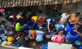 Warga antre mengambil air saat penyaluran air bersih oleh Palang Merah Indonesia (PMI) Grobogan di Desa Kenteng, Geyer, Grobogan, Jawa Tengah, Senin (24/7/2023). Berdasarkan data asesmen dari PMI Grobogan hingga 24 Juli 2023, sebanyak 22 desa di sembilan kecamatan di kabupaten itu mengalami kekeringan akibat musim kemarau sehingga warga membutuhkan bantuan air bersih.  (FOTO : ANTARA FOTO/Yusuf Nugroho)