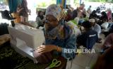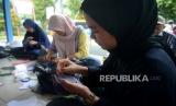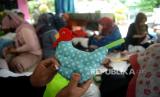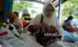 REPUBLIKA.CO.ID,JAKARTA -- Peserta mengikuti pelatihan tenaga kerja mandiri bidang kerajinan tangan (handycraft) di RPTRA Teratai, Jakarta, Selasa (25/7/2023).