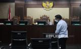 REPUBLIKA.CO.ID,JAKARTA -- Terdakwa dugaan kasus korupsi proyek pengadaan base transceiver station (BTS) 4G Kominfo Johnny G Plate (tengah) bersiap menjalani sidang di Pengadilan Tipikor, Jakarta, Selasa (25/7/2023).