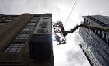 REPUBLIKA.CO.ID, SAN FRANSISCO -- Seorang pekerja mencopot logo di gedung pusat Twitter di San Francisco, Selasa, (24/7/2023) WIB.