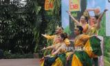 Penari berpose saat memeriahkan peluncuran OBH Combi Herbal di Jakarta, Selasa (25/7/2023). (FOTO : Republika/ Tahta Aidilla)