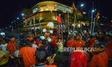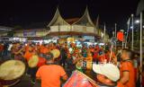 REPUBLIKA.CO.ID, PADANG -- Warga Tabuik Subarang memainkan gendang dan tabuik mini saat prosesi Maarak Jari-Jari di Pariaman, Sumatra Barat, Selasa (25/7/2023).