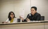 REPUBLIKA.CO.ID, JAKARTA -- Ketum PSSI Erick Thohir didampingi Waketum Ratu Tisha saat menyampaikan keterangan pers di Jakarta, Selasa (25/7/2023).