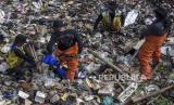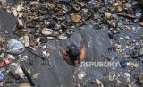 Petugas membersihkan sampah yang menumpuk di Bendungan Bugel Sungai Cikeruh, Cileunyi, Kabupaten Bandung, Jawa Barat, Rabu (26/7/2023). Aksi bersih sungai yang diinisiasi oleh Pandawara Group dan diikuti oleh beragam komunitas lingkungan, mahasiswa, Polri dan TNI serta masyarakat sekitar tersebut digelar dalam rangka memperingati Hari Sungai Nasional. Selain itu, aksi tersebut sekaligus mengajak masyarakat untuk menjaga kebersihan lingkungan dengan tidak membuang sampah maupun limbah rumah tangga ke sungai. (FOTO : ABDAN SYAKURA/REPUBLIKA)
