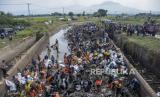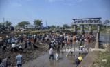 Petugas membersihkan endapan lumpur di Bendungan Bugel Sungai Cikeruh, Cileunyi, Kabupaten Bandung, Jawa Barat, Rabu (26/7/2023). Aksi bersih sungai yang diinisiasi oleh Pandawara Group dan diikuti oleh beragam komunitas lingkungan, mahasiswa, Polri dan TNI serta masyarakat sekitar tersebut digelar dalam rangka memperingati Hari Sungai Nasional. Selain itu, aksi tersebut sekaligus mengajak masyarakat untuk menjaga kebersihan lingkungan dengan tidak membuang sampah maupun limbah rumah tangga ke sungai. (FOTO : ABDAN SYAKURA/REPUBLIKA)