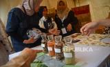 Sejumlah pengunjung melihat produk olahan dalam Festival Ekonomi Sirkular 2023 di Taman Menteng, Jakarta, Rabu (26/7/2023). Dinas Lingkungan Hidup (LH) DKI Jakarta gelar Festival Ekonomi Sirkular 2023 dengan tujuan mendorong masyarakat untuk terlibat aktif dalam ekonomi sirkular. Ekonomi sirkular merupakan pendekatan yang bertujuan menciptakan pertumbuhan ekonomi dengan mempertahankan nilai produk, bahan, dan sumber daya selama mungkin.Dalam konteks pengelolaan sampah, praktik sirkular ekonomi bisa diwujudkan melalui praktik pengurangan sampah, desain ulang, penggunaan kembali dan daur ulang. (FOTO : Republika/Prayogi)