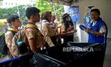 Pengunjung melihat pemilihan sampah plastik dalam Festival Ekonomi Sirkular 2023 di Taman Menteng, Jakarta, Rabu (26/7/2023). Dinas Lingkungan Hidup (LH) DKI Jakarta gelar Festival Ekonomi Sirkular 2023 dengan tujuan mendorong masyarakat untuk terlibat aktif dalam ekonomi sirkular. Ekonomi sirkular merupakan pendekatan yang bertujuan menciptakan pertumbuhan ekonomi dengan mempertahankan nilai produk, bahan, dan sumber daya selama mungkin.Dalam konteks pengelolaan sampah, praktik sirkular ekonomi bisa diwujudkan melalui praktik pengurangan sampah, desain ulang, penggunaan kembali dan daur ulang. (FOTO : Republika/Prayogi)