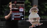 REPUBLIKA.CO.ID,JAKARTA -- Sejumlah aktivis yang tergabung dalam AFFA melakukan aksi bebas kandang baterai dengan membawa poster di Jakarta, Kamis (27/7/2023).