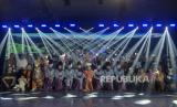 Wakil Pemimpin Redaksi Republika Nur Hasan Murtiaji (tengah kanan) dan Habib Husein Jafar Al Hadar (tengah) berfoto dengan tim Teater Seni Xinjiang, tamu undangan dan pengunjung usai Festival Hijriah di Masjid Pusdai, Kota Bandung, Jawa Barat, Kamis (27/7/2023). Republika bekerja sama dengan Kamar Dagang dan Industri (Kadin) Indonesia Komite Tiongkok menggelar Festival Hijriah untuk menyambut tahun baru Islam 1 Muharram 1445 Hijriah. Festival yang diagendakan berlangsung dari 19 Juli hingga 10 Agustus di sembilan kota tersebut menampilkan tausiyah, pertunjukan budaya asli Muslim XInjiang dan bazar UMKM. (FOTO : ABDAN SYAKURA/REPUBLIKA)