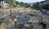 REPUBLIKA.CO.ID,BOGOR -- Warga berjalan di Sungai Ciliwung yang menyusut airnya di Kelurahan Babakan Pasar, Kota Bogor, Jawa Barat, Jumat (28/7/2023).