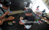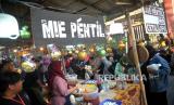 Pedagang melayani pembeli mie pentil saat Pasar Kangen 2023 di Taman Budaya Yogyakarta, Jumat (28/7/2023). Pasar Kangen ini merupakan agenda tahunan yang dimulai sejak 2007 silam. Berbagai lapak kuliner tradisional dan barang-barang tempo dulu digelar hingga 5 Agustus mendatang. Selain sebagai ajang nostalgia pengunjung, acara ini juga untuk membantu UMKM setempat. (FOTO : Republika/Wihdan Hidayat)