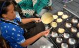 Pedagang membuat pesanan apem beras saat Pasar Kangen 2023 di Taman Budaya Yogyakarta, Jumat (28/7/2023). Pasar Kangen ini merupakan agenda tahunan yang dimulai sejak 2007 silam. Berbagai lapak kuliner tradisional dan barang-barang tempo dulu digelar hingga 5 Agustus mendatang. Selain sebagai ajang nostalgia pengunjung, acara ini juga untuk membantu UMKM setempat. (FOTO : Republika/Wihdan Hidayat)