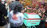 Pedagang es goyang melayani pembeli saat Pasar Kangen 2023 di Taman Budaya Yogyakarta, Jumat (28/7/2023). Pasar Kangen ini merupakan agenda tahunan yang dimulai sejak 2007 silam. Berbagai lapak kuliner tradisional dan barang-barang tempo dulu digelar hingga 5 Agustus mendatang. Selain sebagai ajang nostalgia pengunjung, acara ini juga untuk membantu UMKM setempat. (FOTO : Republika/Wihdan Hidayat)