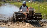 Teknisi menyalakan mesin traktor untuk berpacu pada lintasan sawah saat Lomba Balap Traktor 2023 di Kebonarum, Klaten, Jawa Tengah, Sabtu (29/7/2023). Sebanyak 30 traktor dari berbagai daerah mengikuti kompetisi adu cepat traktor dalam rangka memperingati Hari Kemerdekaan ke-78 RI. Acara yang digelar setiap tahun ini menggunakan spesifikasi traktor dengan mesin 8,5 PK, kemudian diameter roda 75 cm, lebar roda 40 cm, dan ukuran pulley mesin 10 inchi. Lomba dibagi menjadi dua kategori yakni pembalap anak dan dewasa. (FOTO : Republika/Wihdan Hidayat)