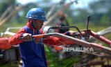 Awak memperbaiki traktor usai berpacu pada lintasan sawah saat Lomba Balap Traktor 2023 di Kebonarum, Klaten, Jawa Tengah, Sabtu (29/7/2023). Sebanyak 30 traktor dari berbagai daerah mengikuti kompetisi adu cepat traktor dalam rangka memperingati Hari Kemerdekaan ke-78 RI. Acara yang digelar setiap tahun ini menggunakan spesifikasi traktor dengan mesin 8,5 PK, kemudian diameter roda 75 cm, lebar roda 40 cm, dan ukuran pulley mesin 10 inchi. Lomba dibagi menjadi dua kategori yakni pembalap anak dan dewasa. (FOTO : Republika/Wihdan Hidayat)