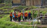 Anggota Tim SAR gabungan mengangkut peralatan untuk operasi SAR di lokasi delapan penambang emas terjebak dalam lubang galian di Desa Pancurendang, Ajibarang, Banyumas, Jawa Tengah, Sabtu (29/7/2023). Memasuki hari keempat operasi penyelamatan delapan penambang emas, tim SAR gabungan mengerahkan 220 personel yang dibagi dalam enam wilayah kerja, dan mengoperasikan 13 pompa submersible untuk menguras air yang menggenangi lubang galian tambang emas.  (FOTO : ANTARA FOTO/Idhad Zakaria)