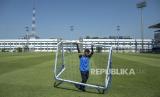 Pekerja memeriksa jaring gawang di Lapangan Sidolig, Jalan Ahmad Yani, Kiaracondong, Kota Bandung, Jawa Barat, Ahad (30/7/2023). Lapangan Sidolig menjadi salah satu lapangan tempat latihan yang diajukan PSSI pada FIFA untuk penyelenggaraan Piala Dunia U-17 pada November-Desember mendatang. (FOTO : ABDAN SYAKURA/BANDUNG POST)