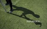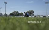 Pekerja memeriksa rumput Lapangan Sidolig di Jalan Ahmad Yani, Kiaracondong, Kota Bandung, Jawa Barat, Ahad (30/7/2023). Lapangan Sidolig menjadi salah satu lapangan tempat latihan yang diajukan PSSI pada FIFA untuk penyelenggaraan Piala Dunia U-17 pada November-Desember mendatang. (FOTO : ABDAN SYAKURA/BANDUNG POST)