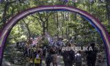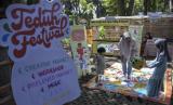 Sejumlah warga mengunjungi Teduh Festival di Taman Hutan Raya Ir H Djuanda (Tahura), Cimenyan, Kabupaten Bandung, Jawa Barat, Ahad (30/7/2023). Festival yang mengusung konsep berkelanjutan (Sustainable Event) tersebut diisi dengan bazar UMKM, pelatihan kerajinan daur ulang, talkshow, pasar kreatif dan bazar baju bekas layak pakai. Festival tersebut bertujuan untuk meningkatkan kesadaran masyarakat serta mendorong praktik berkelanjutan. (FOTO : ABDAN SYAKURA/BANDUNG POST)