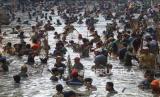 Tradisi menangkap ikan dillakukan hanya pada bulan Suro penenggalan Jawa hal untuk memberikan waktu ikan berkembang biak. (FOTO : ANTARA FOTO/Prasetia Fauzani)