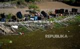 REPUBLIKA.CO.ID, BANJARNEGARA -- Petani memasang pipa untuk menyedot air di Telaga Merdada, Batur, Banjarnegara, Jawa Tengah, Senin (31/7/2023).