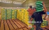 REPUBLIKA.CO.ID, SERANG -- Pekerja mengangkut stok beras kualitas medium kemasan 5 kilogram di gudang Bulog Serang, Banten, Senin (31/7/2023).